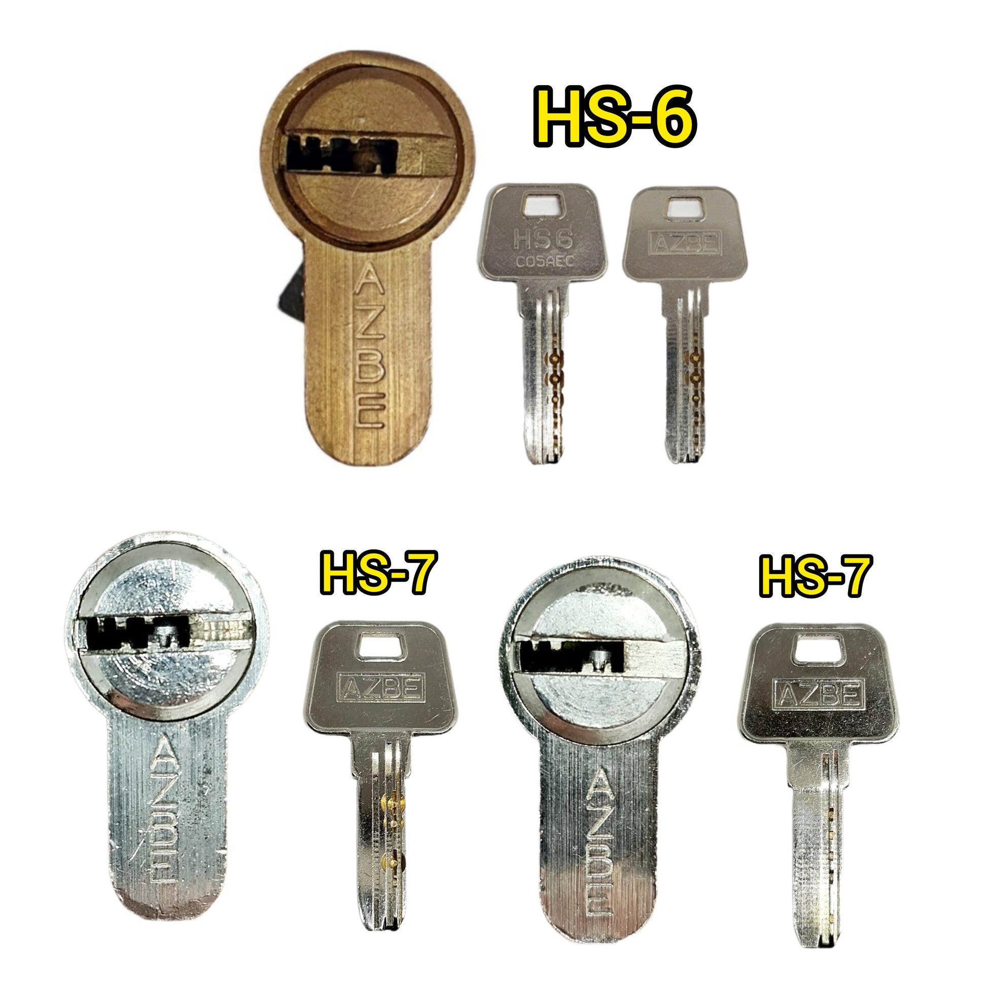 El kit incluye dos llaves de impresión diseñadas específicamente para corresponder al perfil de las cerraduras Azbe HS-6 y HS-7. Estas llaves proporcionan una reproducción precisa y confiable de la forma de la llave, permitiendo una apertura fácil y rápida de la cerradura.